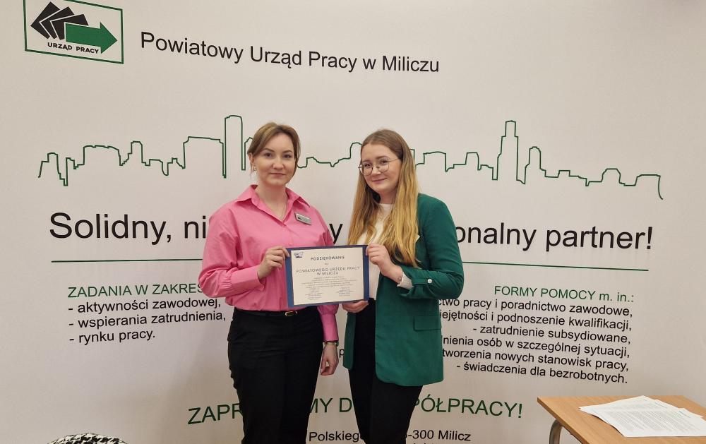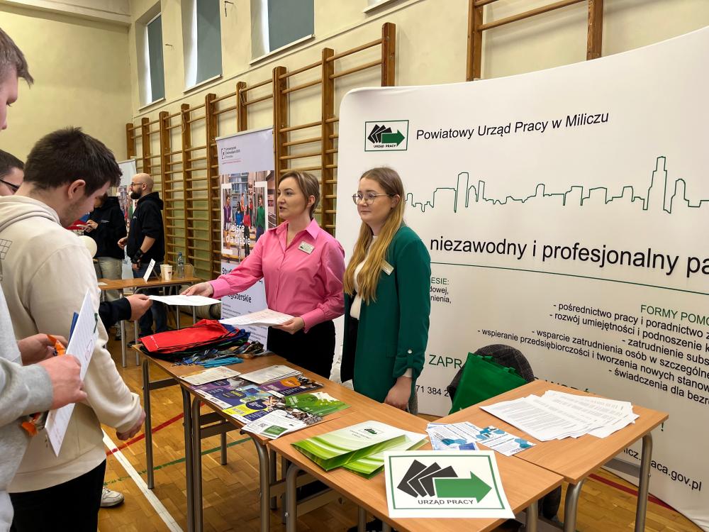 Ewa Karpińska- starszy doradca ds. zatrudnienia i Angelika Zemska- doradca zawodowy 24.03.2026 uczestniczyły w, zorganizowanych przez Zespół Szkół im. Tadeusza Kościuszki w Miliczu, Targach Pracy skierowanych do uczniów tej szkoły tj. technikum, liceum ogólnokształcącego i szkoły branżowej.